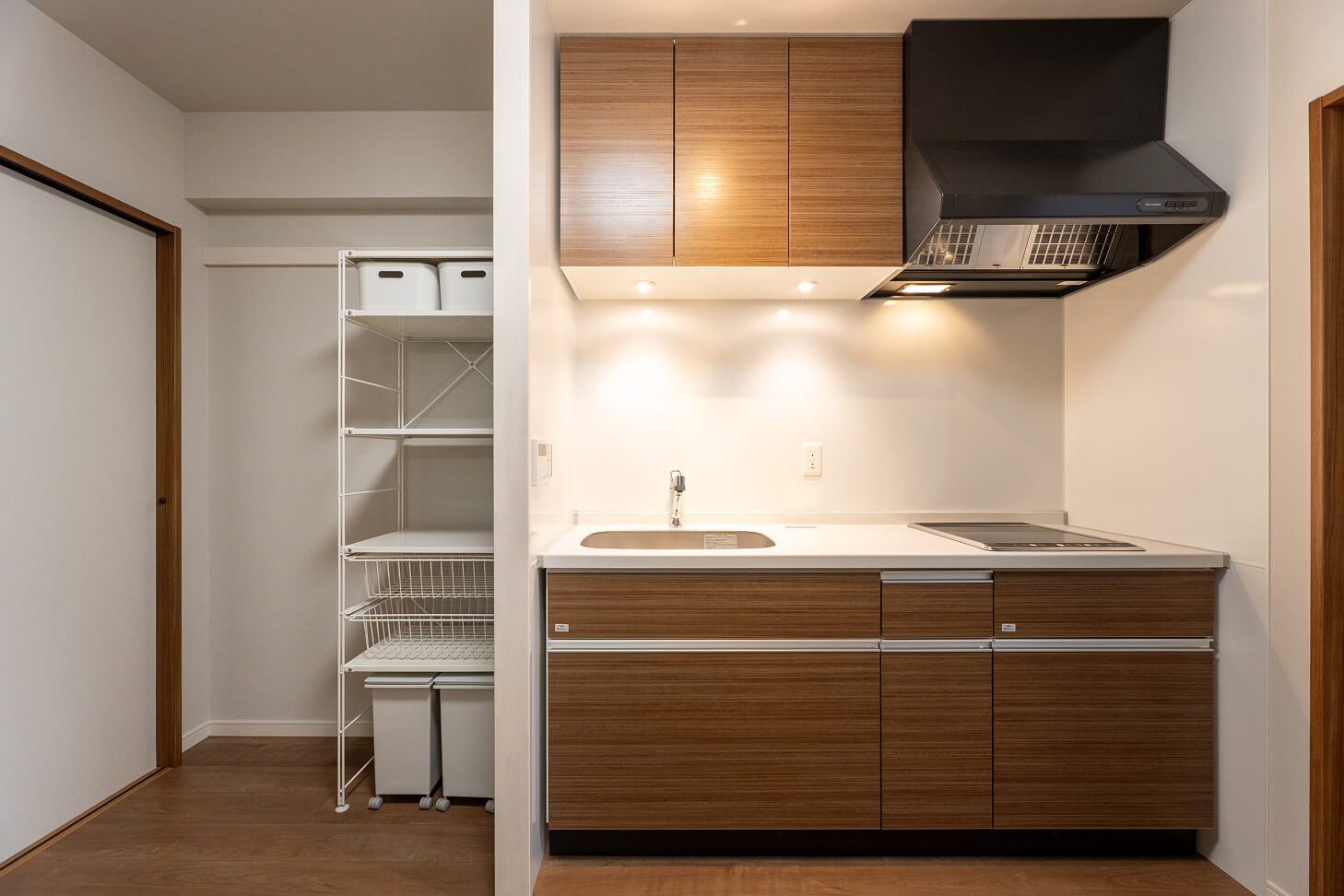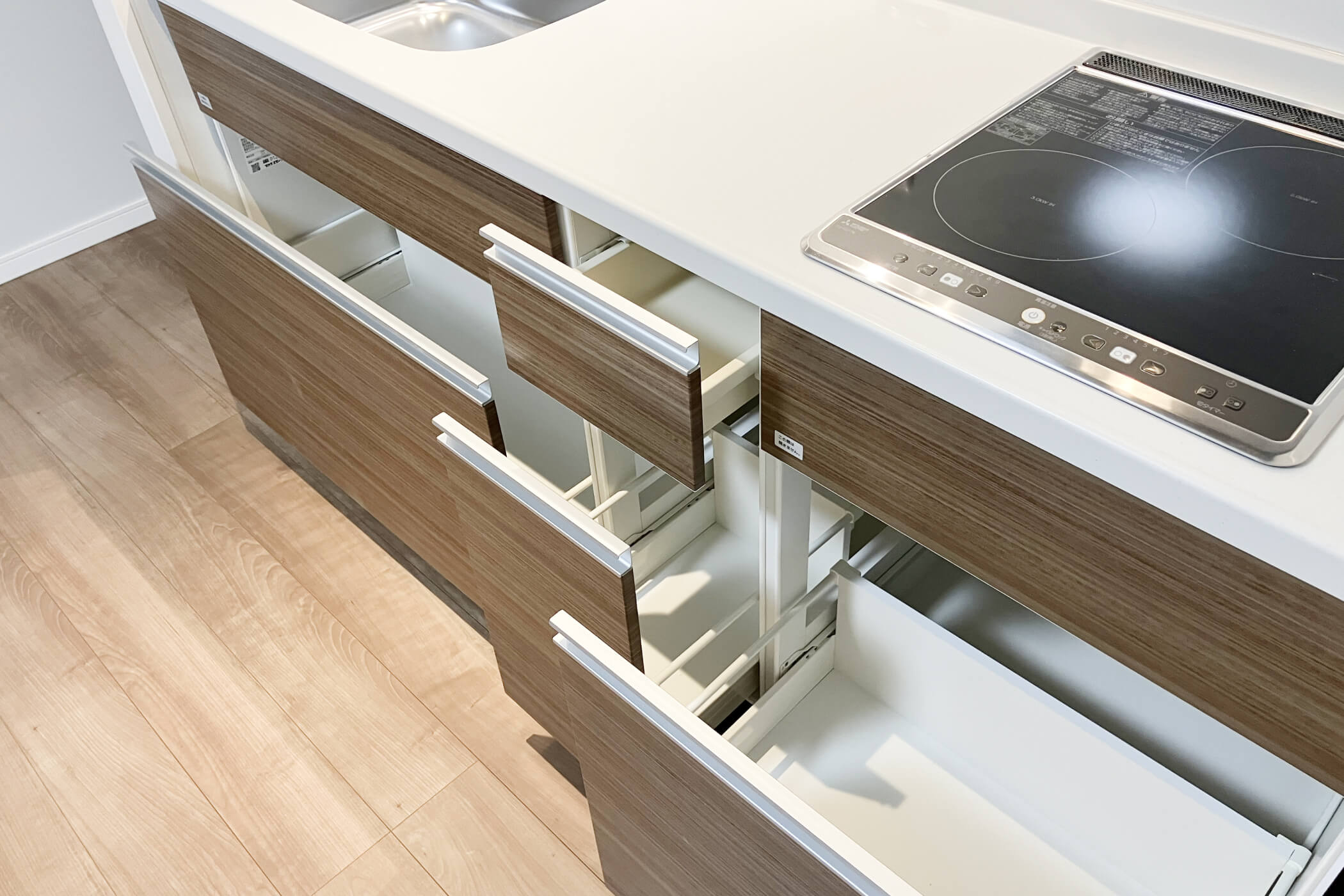 シングルレバーシャワー水栓、IHコンロ(2口)、レンジフード)、
