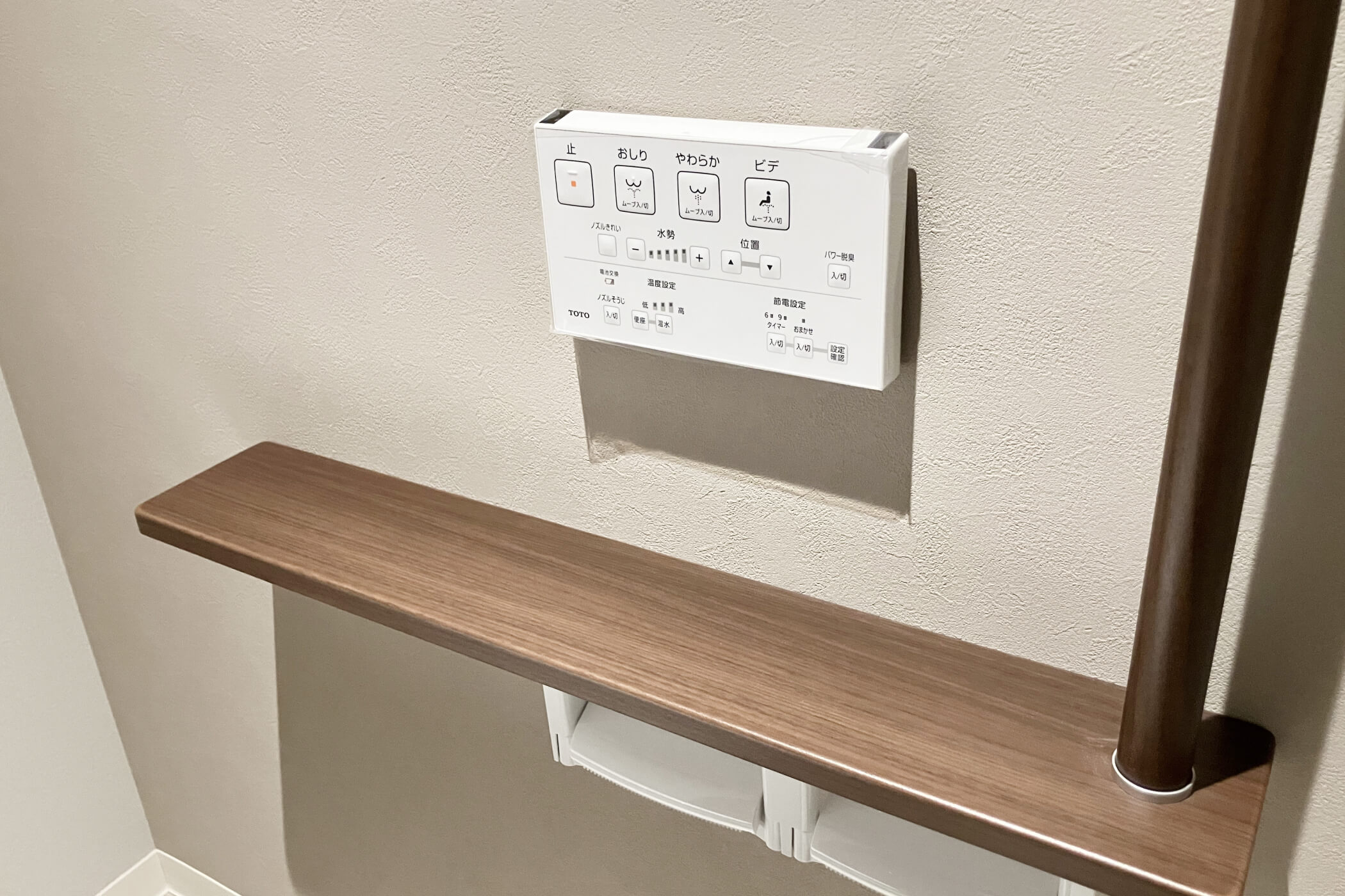 温水洗浄便座、棚付きトイレットペーパーホルダー